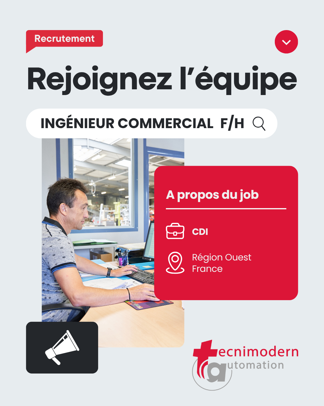 Basée à Saint Germain Laval (42), TECNIMODERN AUTOMATION recherche un Ingénieur Commercial (F/H) Zone Ouest.